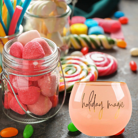 Roly Poly Stemless Wine Glass with Holiday Magic