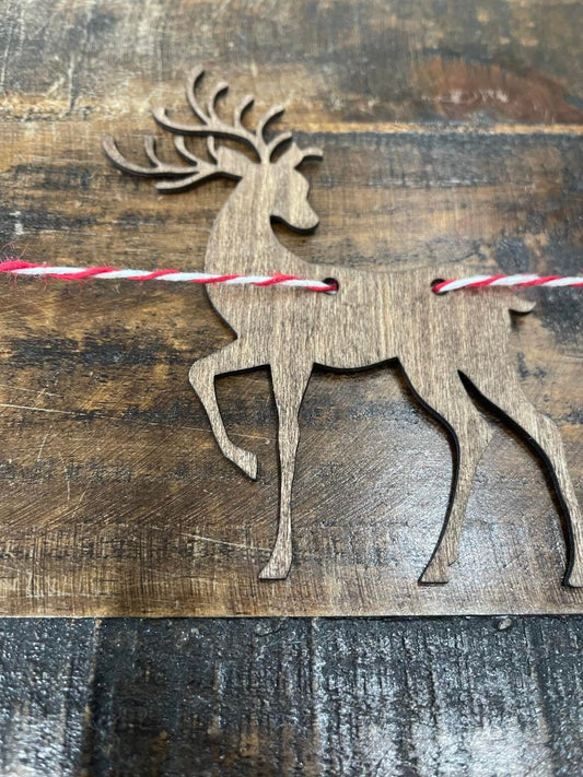 Rustic Wooden Deer Garland - Handcrafted & Stained - 4 Feet Long