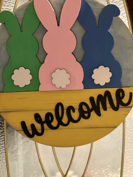 Pastel Easter Bunny Laser Cut Wooden Door Hanger Sign